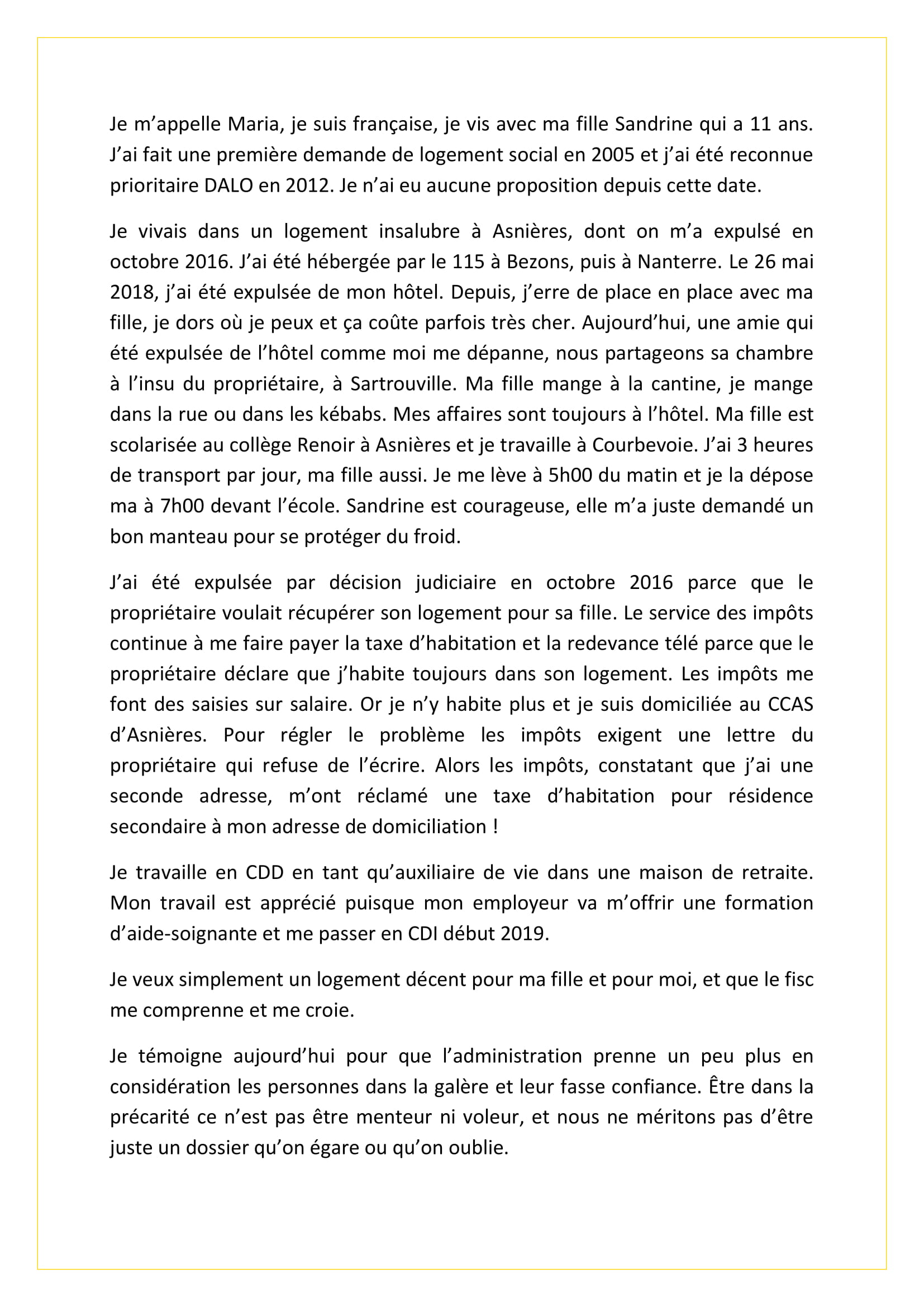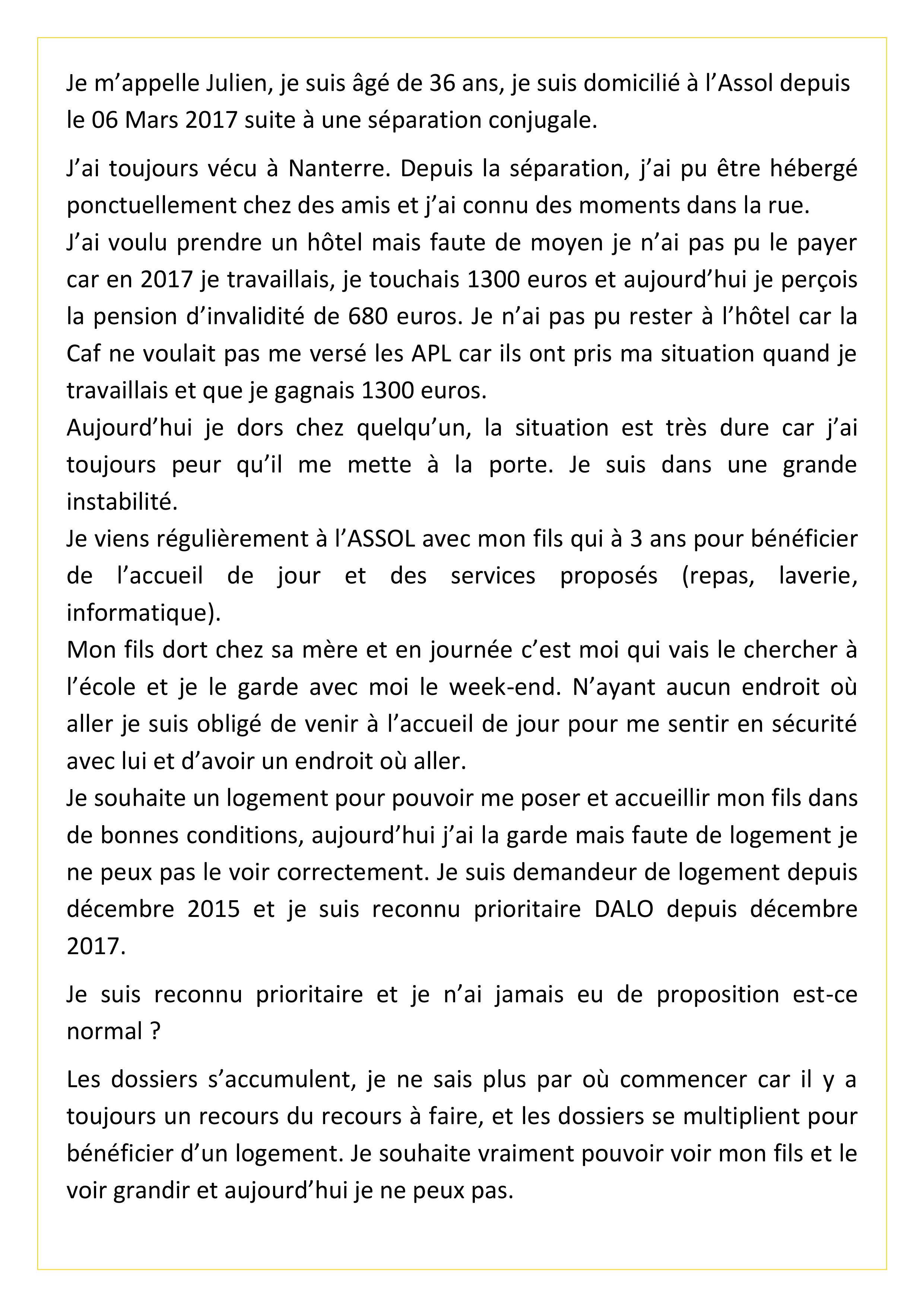 Voici les témoignages de Maria, Fatima, Julien, Jacques Laurent, Liviu.