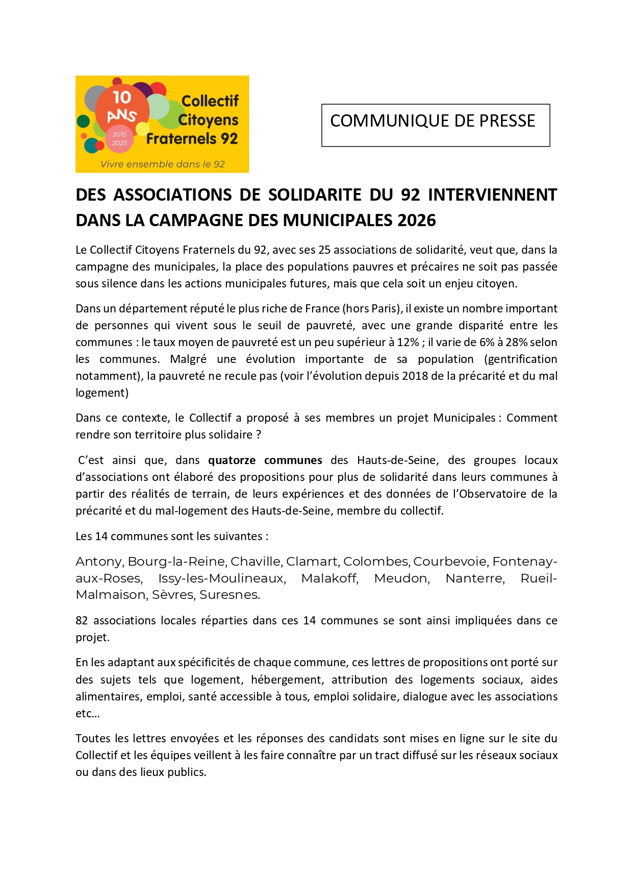 Municipales 2026 - Communiqué de presse