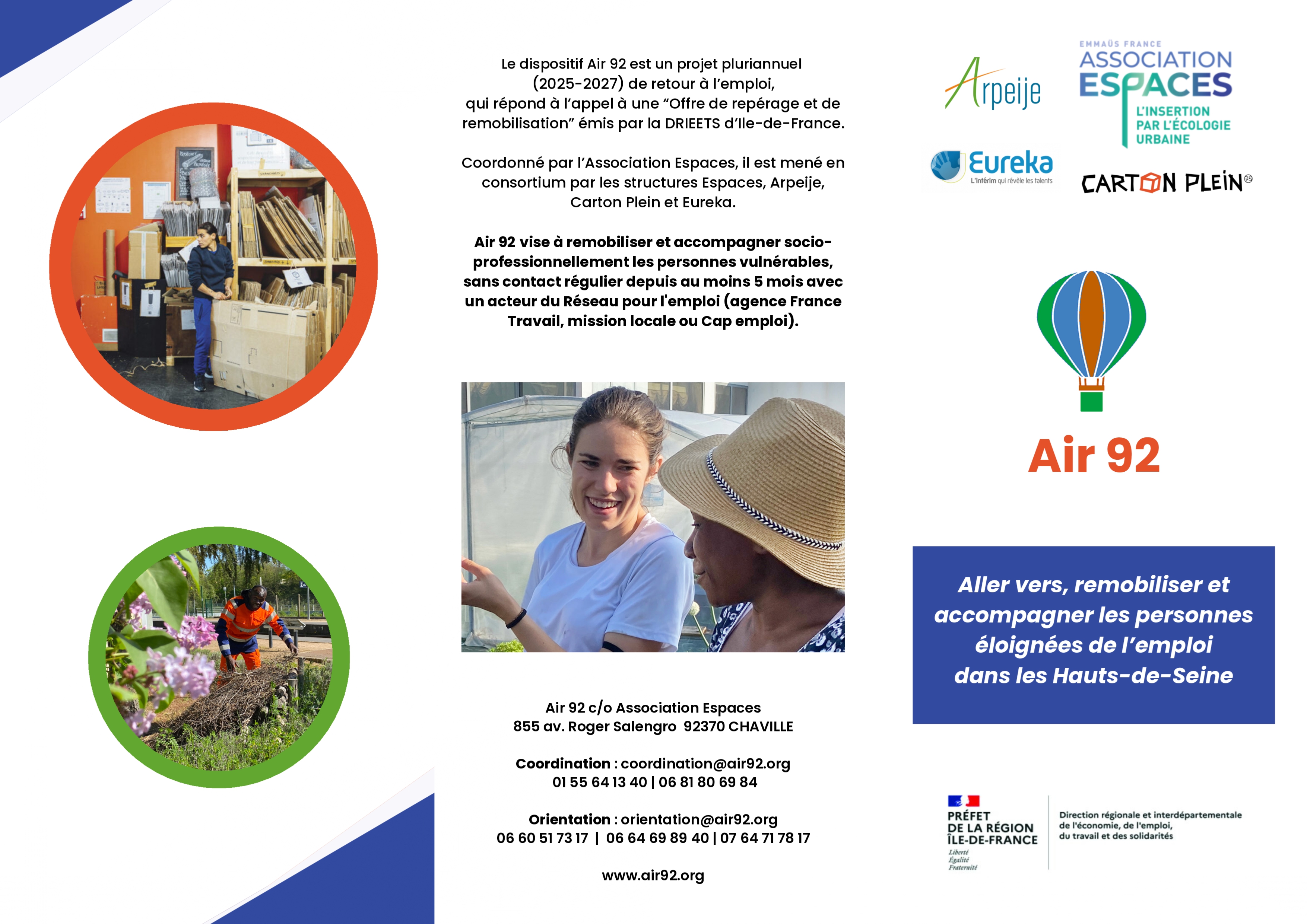 Air 92 vise à remobiliser et accompagner socio-professionnellement les personnes vulnérables, en situation régulière, sans contact régulier depuis au moins 5 mois avec un acteur du Réseau pour l'emploi (agence France Travail, mission locale ou Cap emploi).